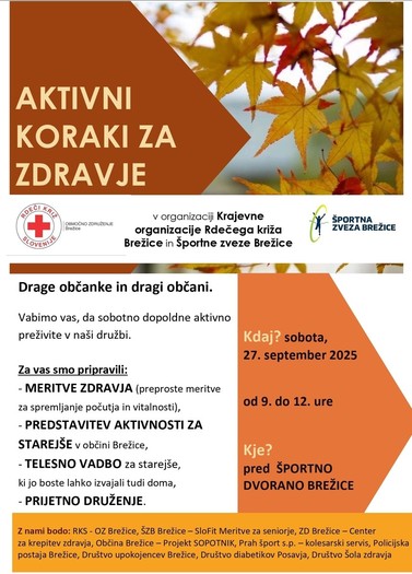 Aktivni koraki za zdravje! Krajevna organizacija RK Brežice vas vabi na aktivno sobotno dopoldne!